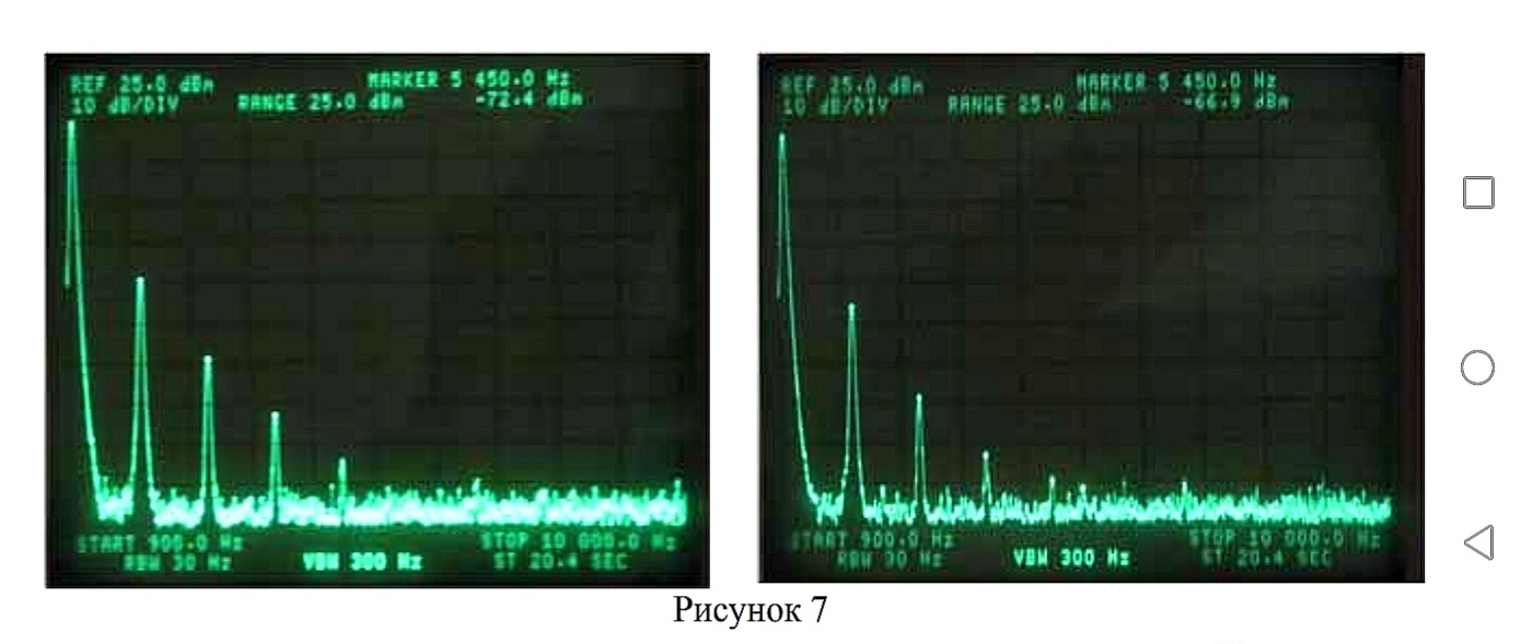На рисунке 7 показан спектр искажений при выходной мощности 1 и 0.25 ватта.