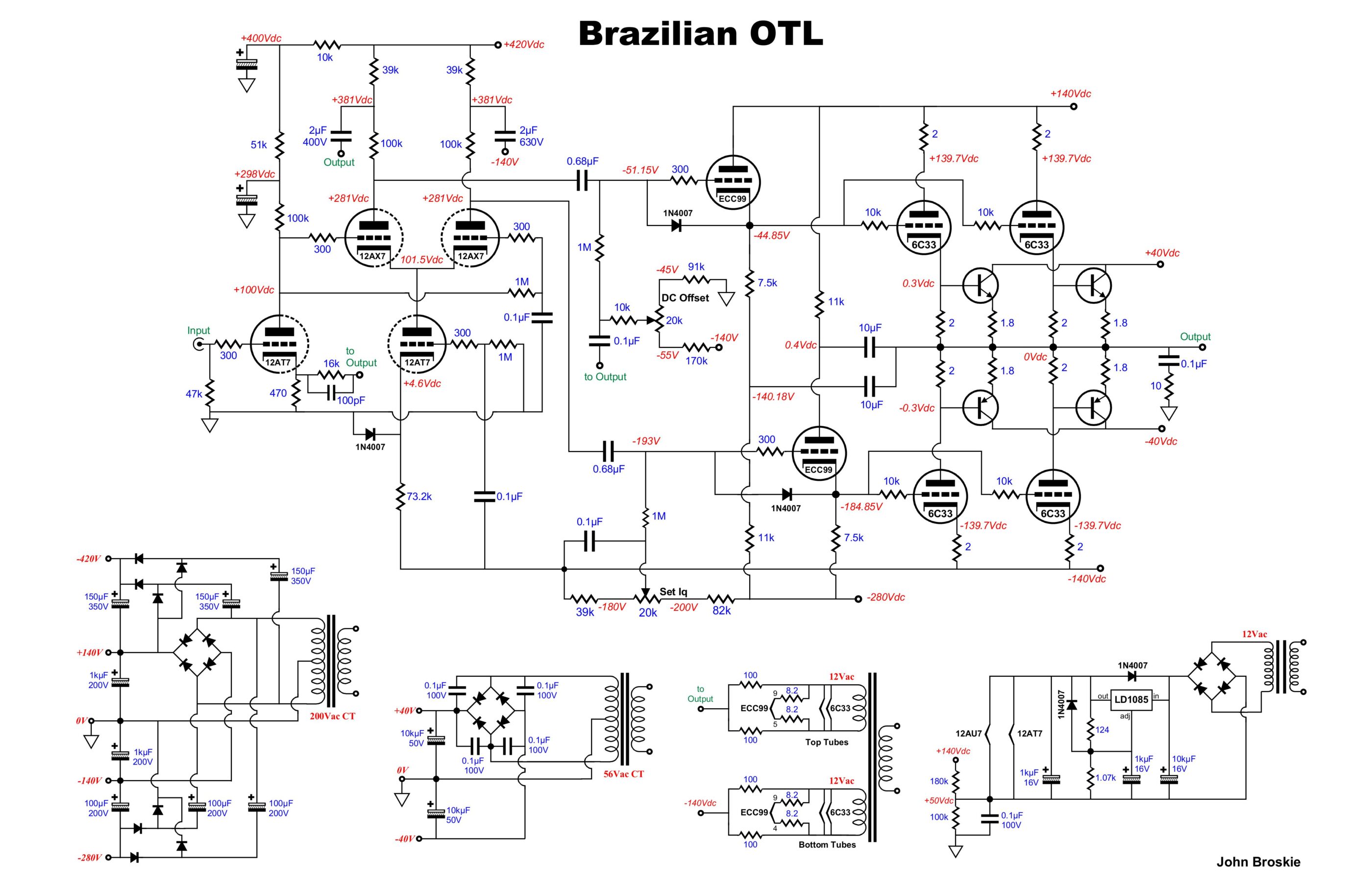 Очень интересный мощный OTL усилитель, от маэстро Джона Броски.