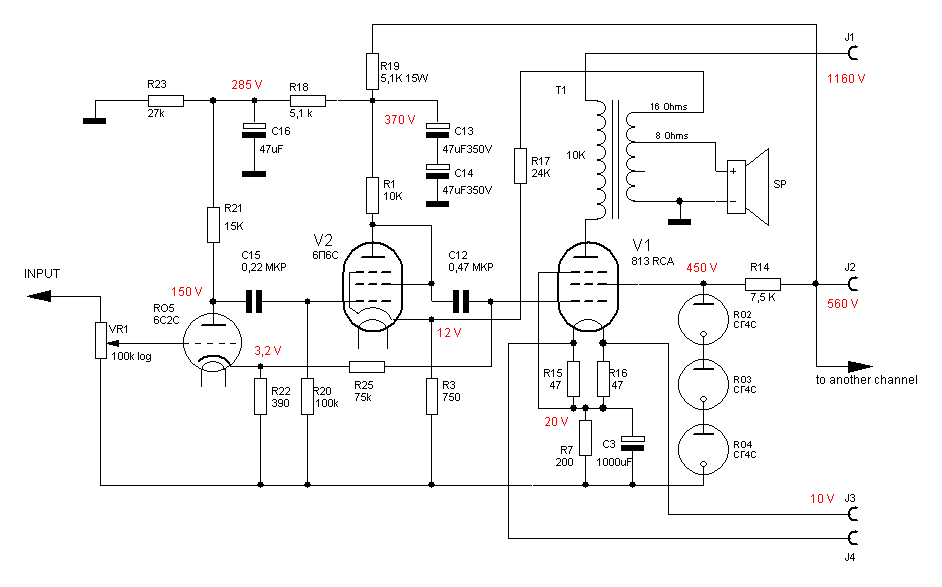 На просторах интернета нашёл интересную схему на 813-ой лампе.